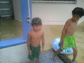 子供達は、大ハシャギ!二人共今まであまり泳げなかったけど、平泳ぎの練習で、