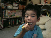 ほおばってるのは誕生日ケーキかな?(*^_^*)可愛い♪